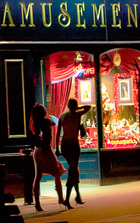 Saturday Night Flavour. I had taken the camera into town on a Saturday night to try and capture the party atmosphere. The girls in their tight skirts silhouetted against the shop lights caught my eye. It wasn't until later when I was processing the pictures that I realised I could crop the name of the amusement arcade into a more suitable title. |